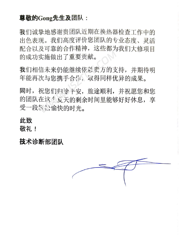 历经两年的携手同行,双方的协作情谊愈发深厚,合作流程也愈发顺畅。每一次大修结束后,中特团队都会系统性归纳复盘,在总结中精进技术实力、强化团队协作效能。相信未来再度携手,这份基于信任与默契的合作,必将碰撞出更璀璨的火花。