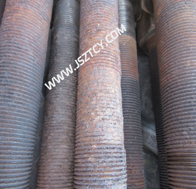 螺栓拆下来后,发现确实在存在大量腐蚀现象,有的甚至将螺纹完全腐蚀掉,进一步腐蚀到螺杆本体,见图3所示。进一步观察,发现多数螺栓是下半部螺纹腐蚀,这和之前的检测结果是一致的,分析原因是:见图4所示,被检螺栓用于固定两个法兰,法兰上通过螺栓的空洞直径大于螺栓,四周存有检修,且两个法兰面之间也有约10mm的间隙,在长期的运行使用中,雨水等物通过法兰间缝隙进入螺栓下部的间隙内,从而导致螺纹腐蚀。找到症结,解决问题就简单了,建议业主将法兰间间隙用黄油填充或者在法兰外覆盖遮挡,阻挡雨水等进入即可。