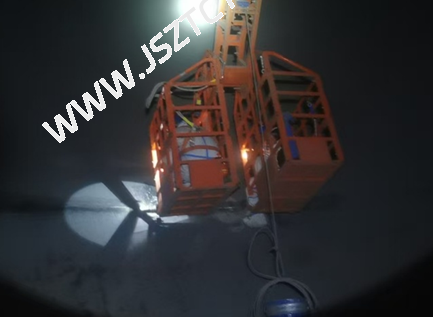 现场检测的另一关键是尺寸与位置标定。对于发现的每一处缺陷,检测人员都用钢卷尺、测量其坐标位置、尺寸大小,并在罐体上用专用记号笔做好标记,同时同步记录在检测记录表中,确保缺陷信息可追溯。 检测过程中,罐体内部狭小的空间、复杂的结构给操作带来了不少挑战。在罐体弧形侧壁的检测中,检测人员需借助升降平台作业,身体紧贴罐体壁面,才能保证探头与检测面的良好耦合;而罐体底部的死角区域,需要手持探照灯配合,才能清晰观察检测显示结果。即便如此,团队始终严格遵循无损检测操作规程,对每一个检测区域做到“全覆盖、无遗漏”,对每一处疑似缺陷做到“反复核验、精准判定”。