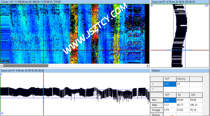 总的来说,我司自研IRIS检测设备是一次极具价值的实践验证。在化工厂热交换管的现场检测中,国产设备能够精准识别管道因腐蚀、冲刷产生的磨损缺陷,为设备安全评估提供可靠依据。我司自研IRIS检测设备生成的检测图谱清晰度与数据准确性,已与行业主流的MS5800进口设备站在同一水平线。