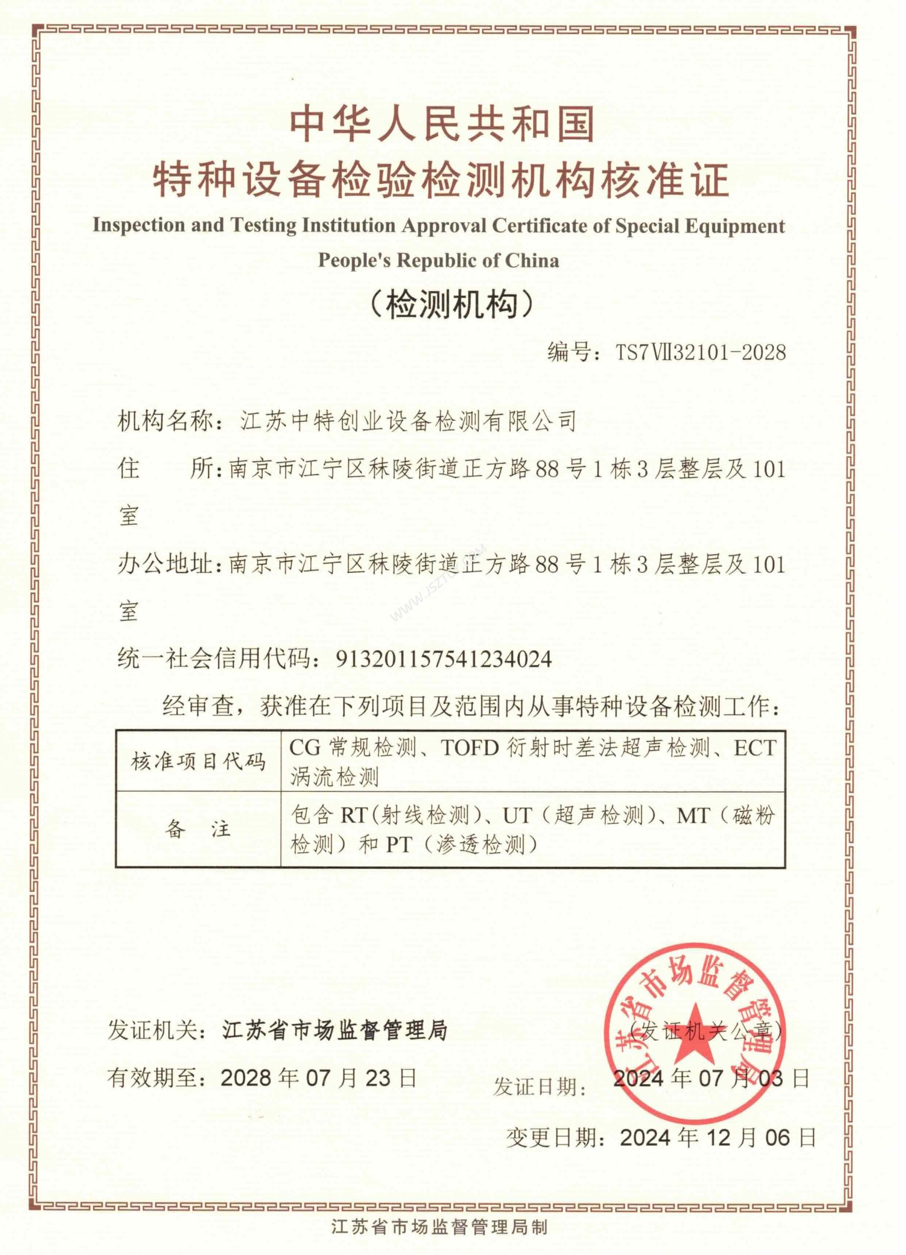 江苏中特创业设备检测有限公司